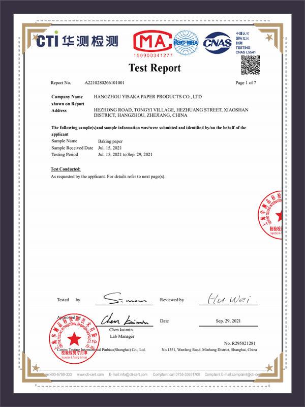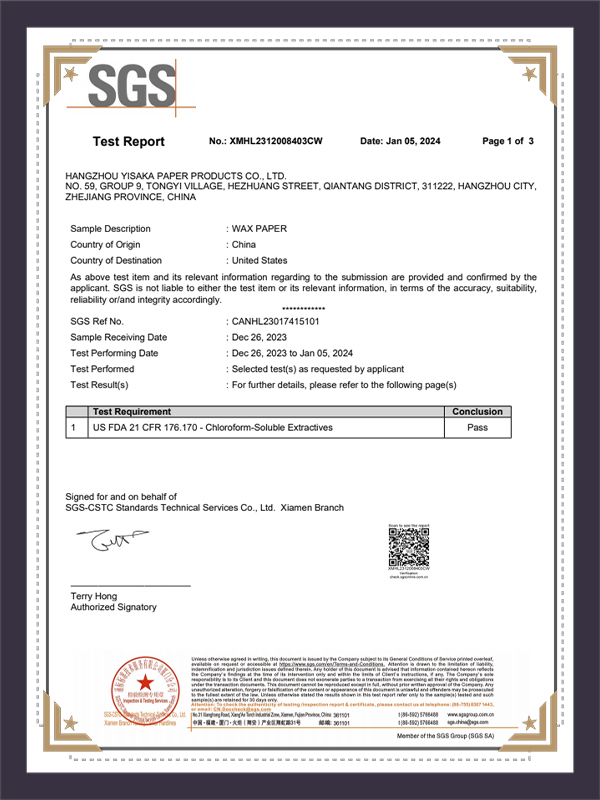 Tuarascáil Tástála Páipéar Wax Páipéar SGS